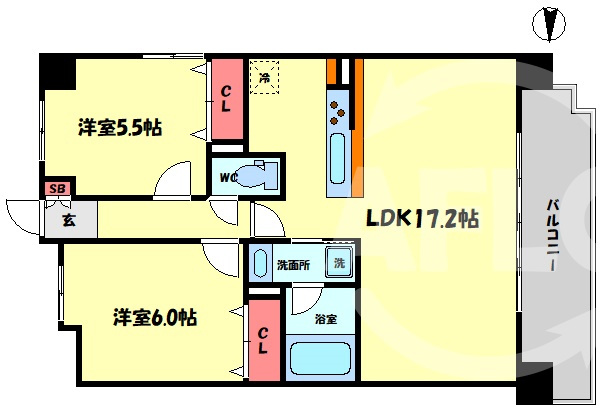 LDK 11.7帖/洋室 5.5帖 - 向き